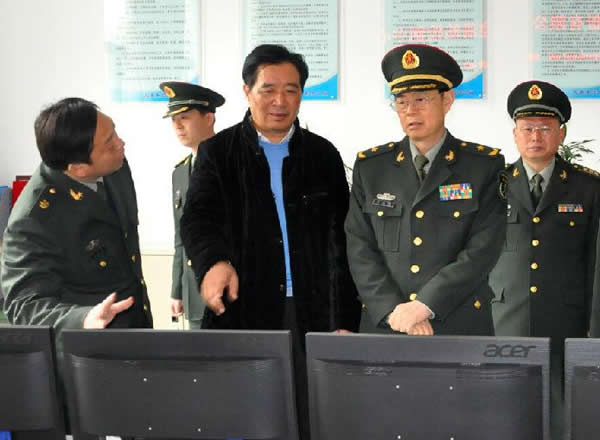 2015年3月5日,安徽省軍區(qū)司令員、少將于天明(右三)在天康武裝部參觀考察